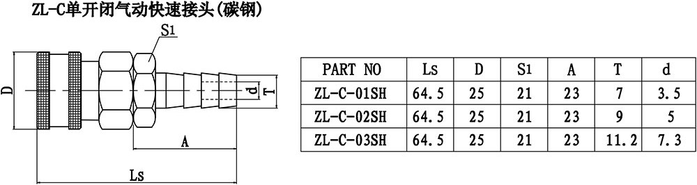 ZL-C單開閉氣動(dòng)快速接頭(碳鋼)